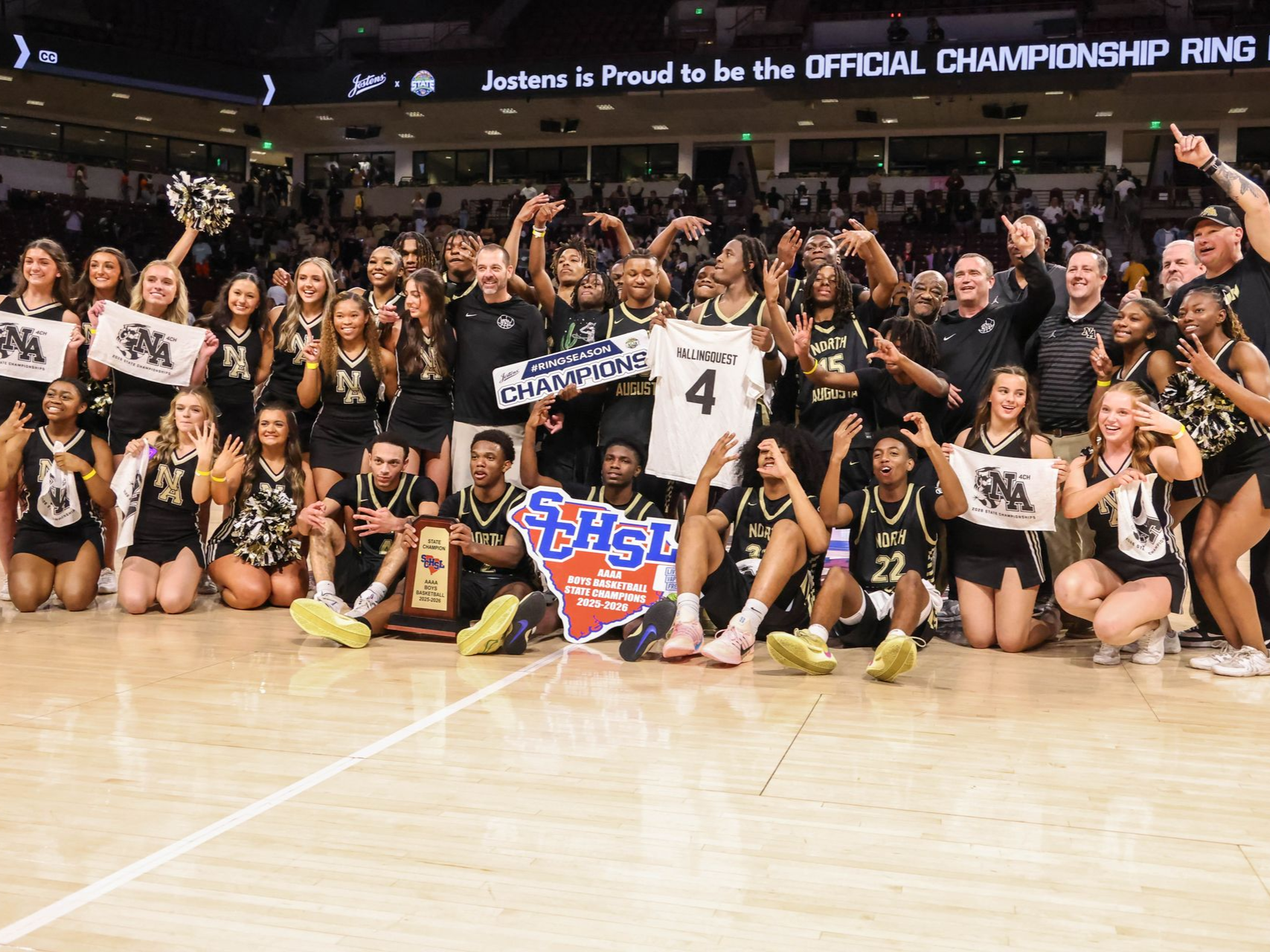 By Billy G. Baker Publisher Columbia —After the High Point Academy Grizzlies (28-3) built a 17-10 first quarter lead over Philip Simmons, in the AA boys basketball title game, on the strength of consecutive three- point shots by Joc Miller, some March, 5 th observers on hand at the USC Colonial Life Arena were thinking it just might be the Grizzles day. After all, the Grizzles came into the title game averaging 71 points a game, so if their first quarter scoring pace had continued, they would have finished the game victorious with 68 points. On the other hand, Philip Simmons came into the finals averaging 58.9 points a game, so being held to just 10 points in the first period would have been a bad trend ending up with 40 points which might have led to a loss. In the end, the game trended more Philip Simmons way as the Iron Horses rallied for a 50-46 win. It was the first boys’ basketball championship in the 9- year history of the school located in Berkeley County. Philip Simmons head coach Garrett Campbell talked with the HSSR after the game. “Our plan was to take away the paint from them,” said Coach Garrett. “Their strength was number one scoring around the rim. Our plan was to pack it in and make them shoot from the outside. Our guys did a great job of sticking with game plan and following through. Coach Campbell praised the play of top senior scorers Hopper Afman and Dylan Morris . “Both of them are elite shooters, and their percentage is in the high 30’s on three- point shots,” said Coach Campbell. “They are also very good senior leaders on the team.” What were the adjustments at the half up by two points? “Our focus was to stop turning the ball over because that was the reason we got down early in the game,” said Coach Campbell. “Coming down on two feet, making good passes, boxing out, and staying under control were some things we stressed to the team at halftime. “They pressed us three different ways,” said Coach Campbell. “They used a man, a 1-2-2, and a 1-3-1 and we did a really good job against all of them. I felt like we did a good job of handling the press all game.” In conclusion, who was the step-up player for the Iron Horses? “Well, number five is our guy, Afman Hopper,” said Coach Campbell. “He’s an all-state player and he is our leader. He has had multiple 20-point games in the playoffs. Wherever we go, he takes us.” High Point Academy head coach Lee Sartor, known for being the head coach of Zion Williamson at Spartanburg Day a few years ago, shared his feelings after the tough loss. “Everybody plays us zone defense, and we knew that coming into the game,” said Coach Sarter. “Give them credit. They wanted a half-court game and we just kind of played into that. We didn’t make shots when we needed to and we didn’t push the ball when we needed to. Coach Sartor was not pleased with the difference in total fouls called on each team. His team had 19 fouls called on them resulting in 11 points for Philip Simmons while his team scored six points off of the 10 fouls called on the Iron Horses. “I just feel like you need to make calls both ways and at times I didn’t think that was the case,” said Coach Sartor. “I think at times in the game we were afraid to penetrate gaps in their zone defense and I do not know why this was the case,” said Coach Sartor.” To their credit when we did get the ball inside, they did a good job of covering us and again were there some fouls missed on the inside tonight? Regardless, we need to be able to play that contact.” Coch Sartor is very high on the potential next level opportunity of his 6-7 junior big man J’Sean Sanders . “He has a chance to be a major college basketball player if he continues to work hard,” said Coach Sartor. “The biggest thing with him, and lot of our players, is preparation. You are going to play like you practice so it is important to play the game as much as you can. “The road to getting here wasn’t easy,” said Coach Sartor. “In every playoff game it seemed like a different player stepped up for us and that is the mark of a good team. However, in this game things didn’t go our way at crucial times. I am proud of our effort and the fact that we have played for a state championship back-to-back. Our goal in the near future is to win one.: The Iron Horses won the second period 20-11 to take a 30-28 lead at the half. In the second period senior Hopper Afman hit the first three-point swish for Philip Simmons at the 6:50 mark and then senior teammate Dylan Morris hit consecutive moon shots cutting the deficit to 25-19 with 3:58 left in the first half. Then big man Jack Mevold scored in the paint to make the score 25-21. Next Morris bombed another three to cut the deficit to 25-24 and High Point called time-out to slow down the Iron Horse rally. By the half, Philip Simmons was up two points. After the first quarter, Philip Simmons played a very tight zone defense which limited High Point Academy’s big men from getting easy baskets in the paint. At the half, Morris was the top scorer for Philip Simmons with 11 points while Miller led the Grizzles with 10 points. The third period was a defensive battle with High Point Academy outscoring Philip Simmons 10-7 to take a narrow 38-37 lead into the final period. Afman scored a bucket at the 7:45 mark to put the Iron Horses up 39-38. Chris Copeland answered with a put-back basket to give the Grizzles a 40-39 lead with 7:10 left in the contest. Around this time, High Point Academy 6-7 big man J’Sean Sanders was called for his 4 th foul, and he went to the bench for nearly three minutes. While he was out, Philip Simmons had success driving to the basket and they led 44-41 with 1:56 left in the game. With three minutes left in the game Sanders returned to the Iron Horse line-up and he soon was whistled for what appeared to be his 5 th foul. However, High Point head coach Lee Sartor asked the person keeping