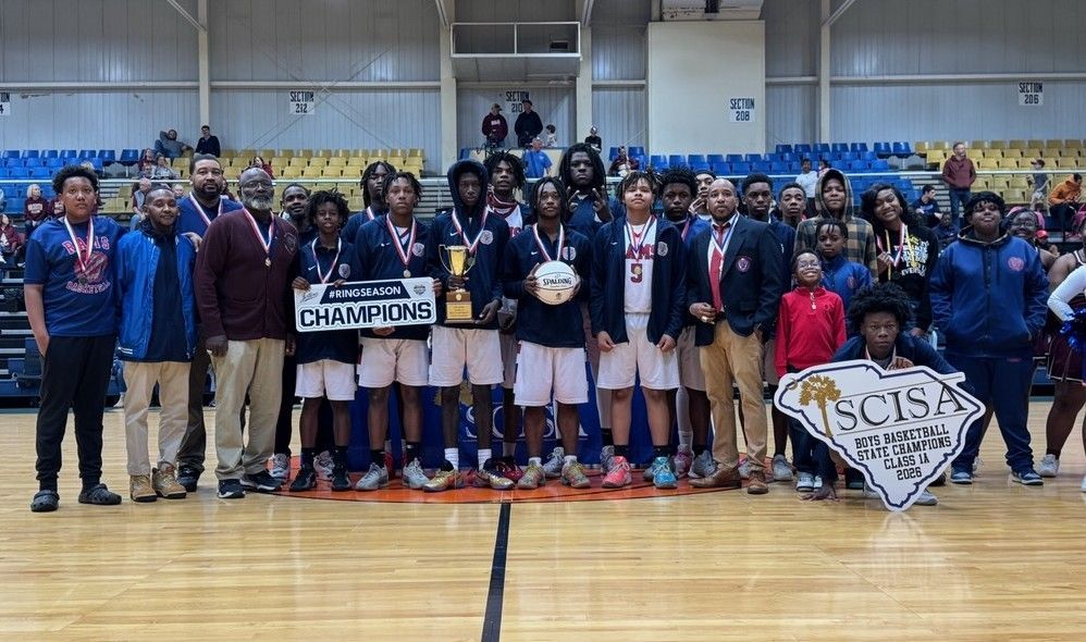 By Billy G. Baker Publisher Sumter —The land-mark coaching orbit of Pinewood Prep boys’ basketball head coach Pat Eidson keeps getting closer to 1,000 career wins, as the Panthers (27-6) capped off the 2025-26 season with a SCISA AAAA state championship over Heathwood Hall (61-49) at the Sumter Civic Center on February, 27. The Panthers only led 20-18 at the half against the Highlanders, and Coach Eidson, and his staff made some key adjustments at the half. “At halftime, we decided to speed the game up with a more up-tempo offense and to press a little more to try and force turnovers,” said Coach Eidson, who became the state’s all-time wins leader with over 944 career wins at the mid-point of last season. Coach Eidson will enter the 2026-27 season needing around 20 wins to hit the 1,000-career win mark. “We were successful with these adjustments and it ended up being the difference in the game,” said Coach Eidson. “They were basically the same team we saw early in the season. They did all the stuff we expected them to. “This state championship is really sweet,” said Coach Eidson. “As you get older, you learn to appreciate it a whole lot more. I know the amount of effort and work that went into this season so I can appreciate it. Returning all five starters this season, I knew we had a chance to be pretty good and we were. “I’m really happy for the kids, especially the seniors,” said Coach Eidson. “ Jayden Alexander and Jonathan Slawson are senior starters who have done a great job for us and Bralon Blackwell made contributions coming off the bench. “I said all season that this team had Potential to win a state title, and tonight we played up to that potential,” said Coach Eidson. “It was one of our better second halves all season.” Over-all, Coach Eidson has now won 12 state titles in his historic coaching career with 9 of these titles coming at Pinewood Prep. “It has been 15 years, or so since we won out last state title so it feels great to finally get another one for our players, fans and the school,” he said. “We are already looking forward to next season.” Heathwood Hall (21-8) head coach Brian Benator was proud of his team for all of their hard work also. “We had a stretch tonight where we struggled to make some shots and they had a stretch where they hit a couple three’s to go up on us 8 to 10 points,” said Coach Benator. “They also put more pressure defense on us in the second half and that helped them get several transition baskets. “The lid was on the rim tonight against us,” said Coach Benator. “We just had some problems making shots tonight. “We came into the game off a great week of practice and focus,” said Coach Benator. “I felt like we came in ready to play tonight. Our guys have been motivated all season and we had not lost a game since January, 3 rd . “I am proud of the effort of our team tonight and we’ll be back next season,” concluded the coach. Pinewood Prep was led on the scoring index by 6-3 junior forward Tre Green who had 24 points and 6-7 junior forward Kais Parris who had 18 points. Also, 6-8 junior center Tripp Eidson had 12 points and directed the defense from the top of the paint all game. Eidson had a monster dunk, off of a steal, with 3:2 left in the game that extended the Panthers lead to 51-39 at the time. Slawson contributed five points and Jayden Alexander closed out the scoring with two points. With the return of Green, Parris and Eidson to the team next season expect the Panthers to be favored to repeat next season. Heathwood Hall was led on offense by 8 th grader Jackson Dickerson with 10 points followed by senior guard Deuce Claxton and soph Hunter Colins with 9 points each. Senior forward Xander Pertile contributed 8 points and senior Ryan Pfister , soph Peyton Souter , and junior Keon McKinley each scored two points. Heathwood Hall led 14-11 after the first period. However, the Panthers rallied to lead 20-18 at the half. The pace picked up in the third period when the Panthers outscored Heathwood 18-14 to take a 38-32 lead into the final period. The SCISA AAAA boys all-tournament team was represented by Zy Dennis of Laurence Manning , along Chip Ravenell and Keon McKinley from Heathwood Hall. Pinewood Prep was represented by Green, Parris,
