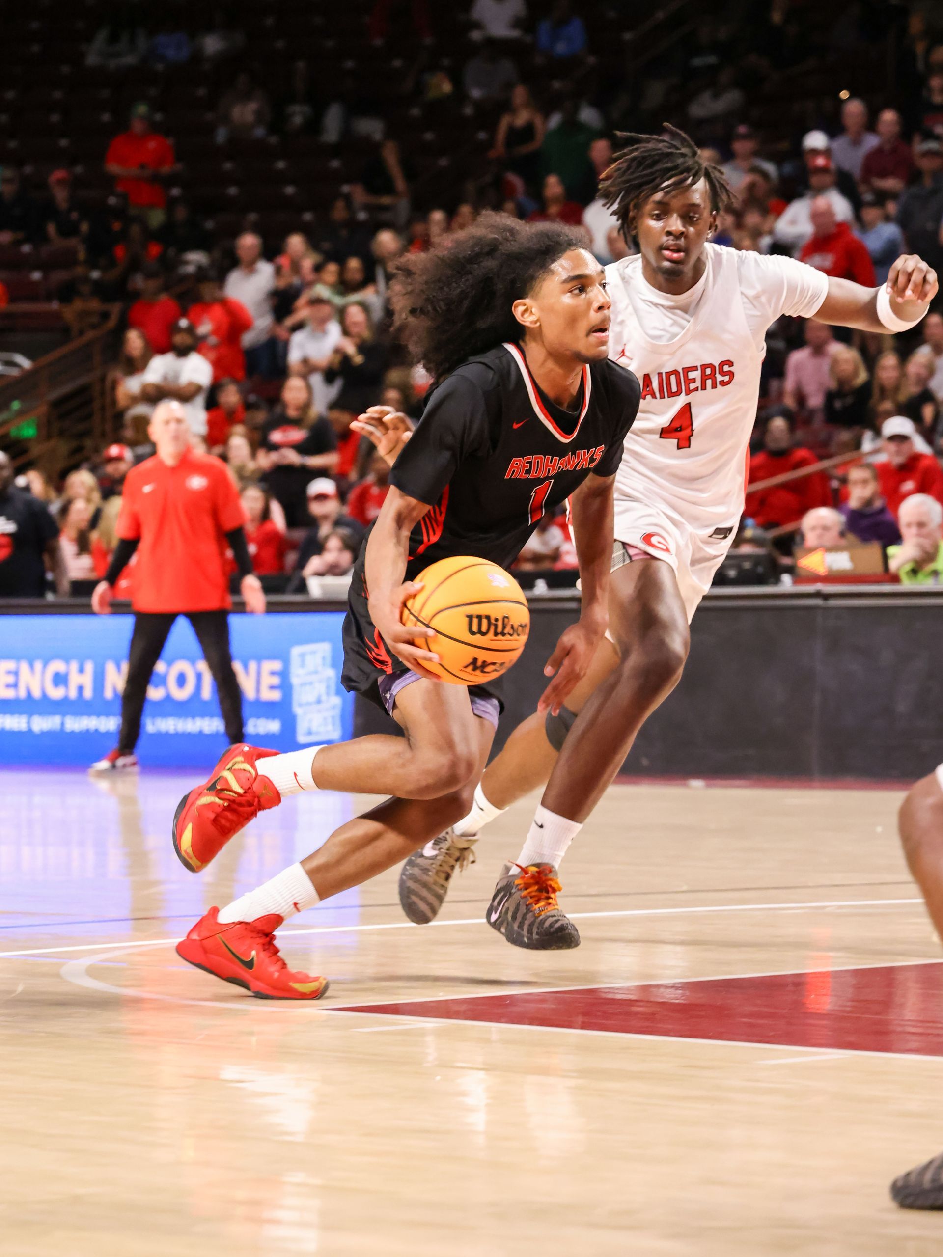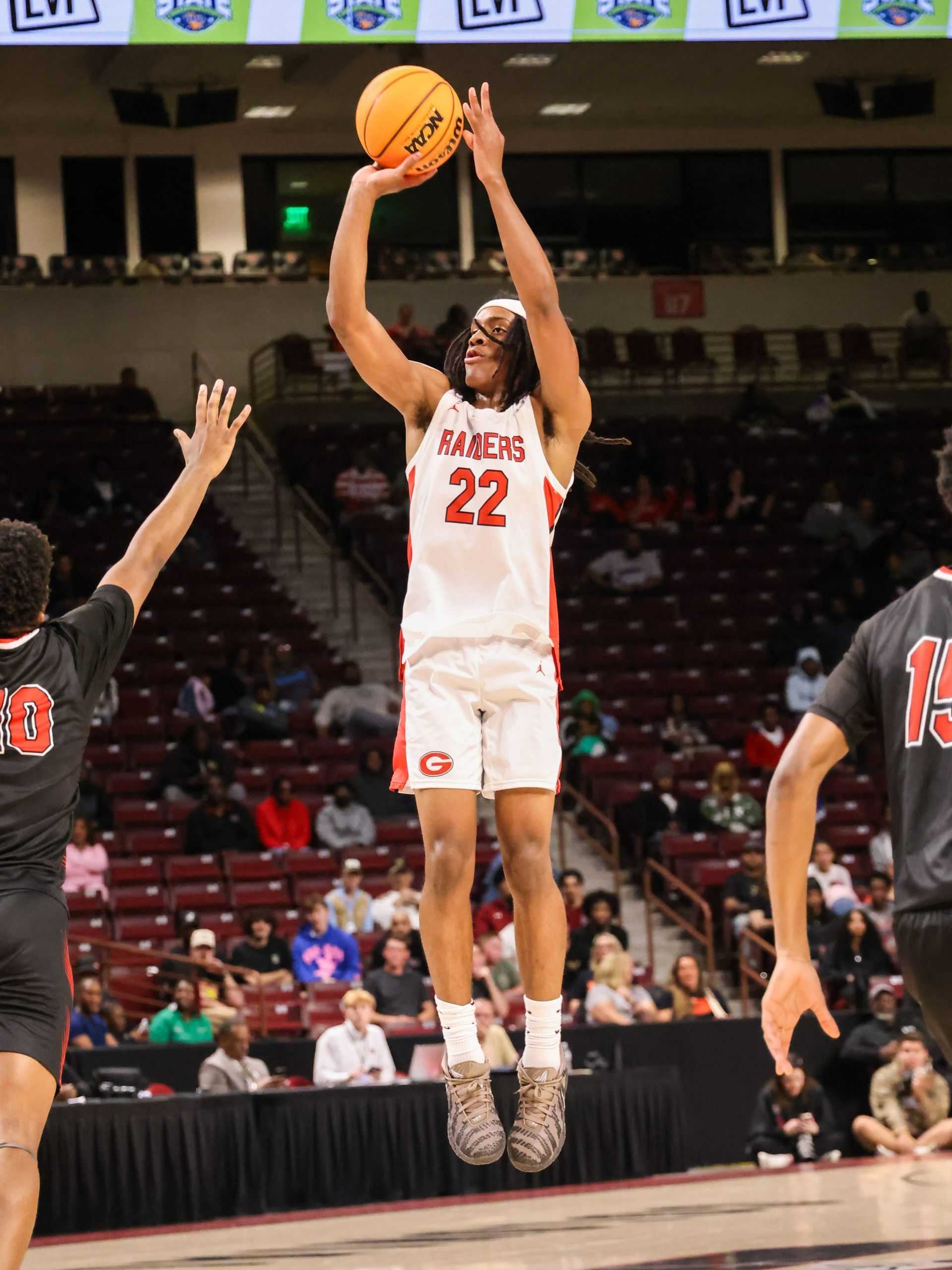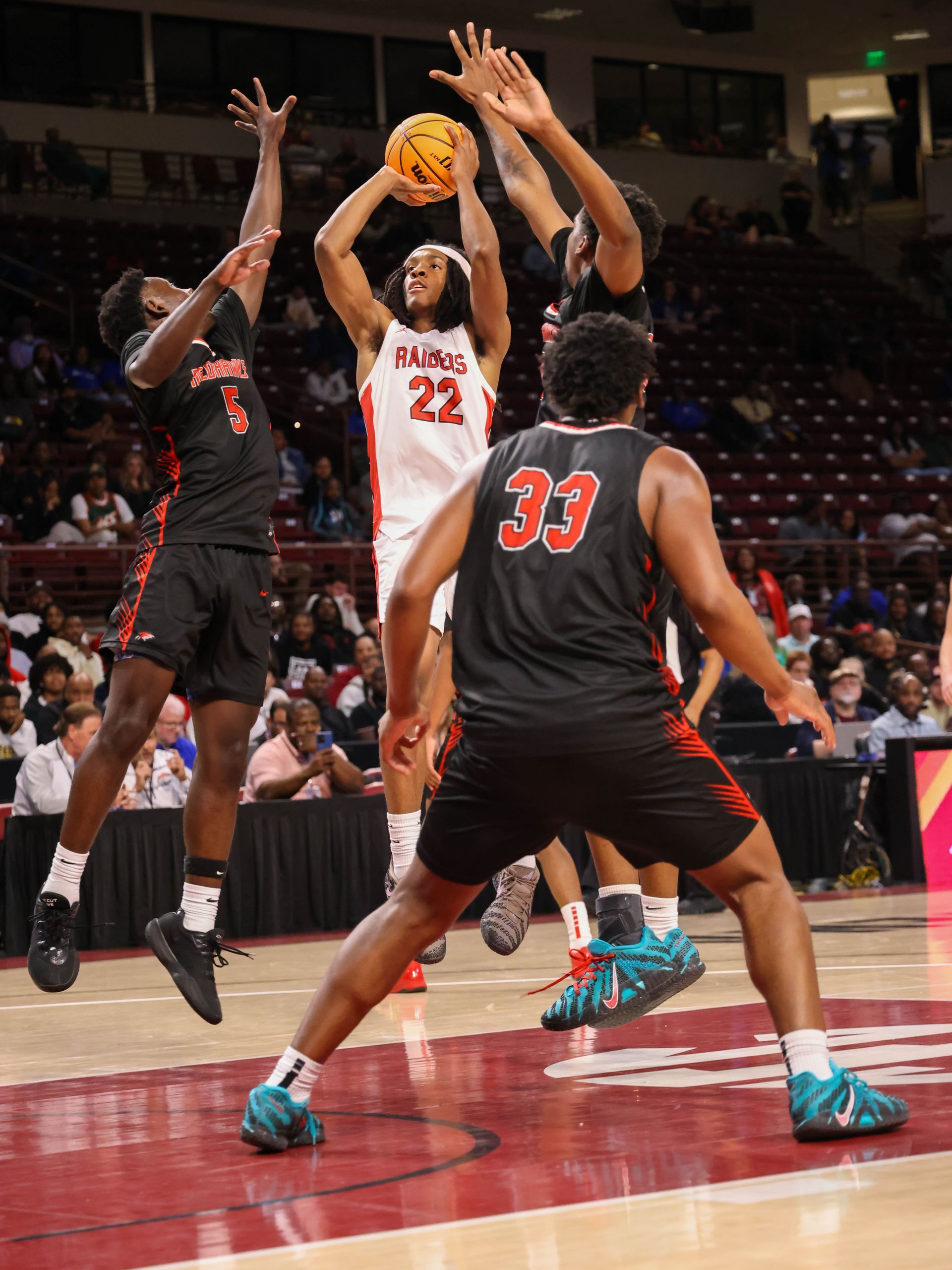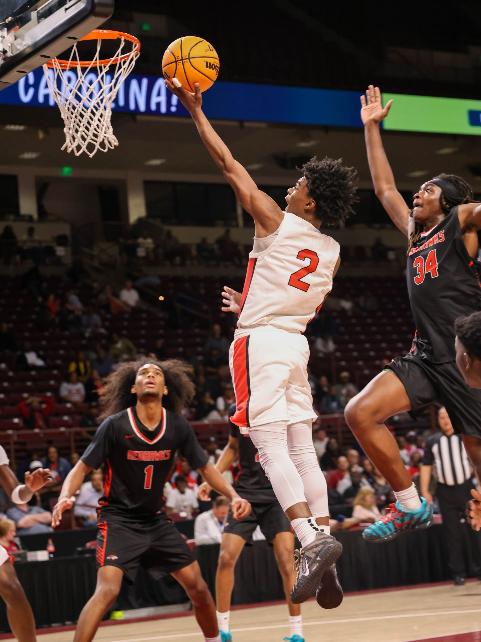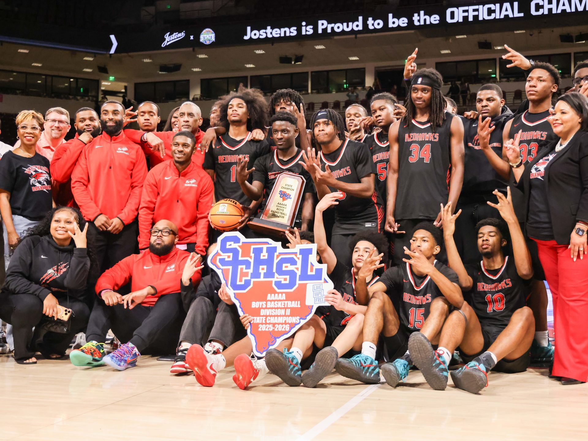 By Neill Kirkpatrick Special to the HSSR Florence – Heading into Friday’s night 5A Division II lower state championship game you had one team that had been on this stage several times in Goose Creek and the other Westwood who was making their first appearance. The Gators of Goose Creek were the defending lower state champions and had designs on making their sixth trip to the state finals while Westwood was looking to make school history and reach their first state championship game. The Redhawks (24-3)made school history as they hung on for a 56-53 win over the Gators sending them to Colonial Life Arena where they will look to continue their historic run in the playoffs. They will take on defending 5A Division II state champion Greenville. The Red Raiders (23-6) defeated Riverside 55-48 to punch their ticket earning the chance to go back-to-back. “Once we settled down and got going and figure out the game we were fine. We feed off our defense and we were able to chip away and get the lead by halftime,” said Westwood head coach Trent Robinson. “ I’m so proud this group they have made history and we have reached new heights. Look over there they are so happy and I am going to let them celebrate. We are going to state.” The Gators ended the season at 26-3 but short of their goal of returning to the state championship game. “I’m disappointed for that group. I wanted the seniors to get another chance at a championship. I have had these guys for a lot of years and I feel like I raised all of them. I love those guys and I could not have asked for more from them. They gave me everything and I’m proud of them,” said Goose Creek head coach Blake Hall. “Unfortunately, this is the nature of the beast when you get this far.” The game started well for both teams as they relied on their strengths. The Gators hit five three-pointers with Ja'Quell Brown hitting all three of his attempts and scoring 11 points in the quarter. Brandon Grant chipped in 9 points. The Redhawks pounded the ball inside and were led by Ariel Huell with six points in the quarter. The quarter ended with the Gators on top 23-16. The second quarter saw the Gator’s increase their lead to 28-20 without Brown or Grant scoring before the Redhawks made a charge. Down by 8, Quentin McGill would start what would be a 12-2 run to end the quarter with a drive to the basket for two-points. Cylan Mcleod gave the Redhawks the lead at 30-28 when he hit their only three-pointer of the night. He would end the quarter by making two free throws and the Redhawks headed to the half up 32-30. Daytron Cockfield would score six points and Mcleod added five as Westwood increased their lead to 46-41 by outscoring the Gators 14-11. The fourth quarter saw the Redhawks stretch the lead to seven at 48-41 before the Gators began to chip at the lead and tied it at 50 when Brown hit his first three-pointer since the first quarter. McGil would give the Rehawks the lead for good as he hit an inside shot with under two-minutes to go for 52-50 lead. D'marcus Thomas would finish it at the line for Westwood as he scored an old fashioned three point play and hit a three free throws to keep the Gators at bay and send his team to the state finals. Westwood was led by Mcleod with 12 points and Cockfield with 10. Jayden Crews and Thomas chipped in with 9 and 8 points, respectively. Brown led the Gators and all scorers with 17 points while Brown finished with 10. Idreyiss Hoist and Reggie Dozier III added 8 and 9 points.