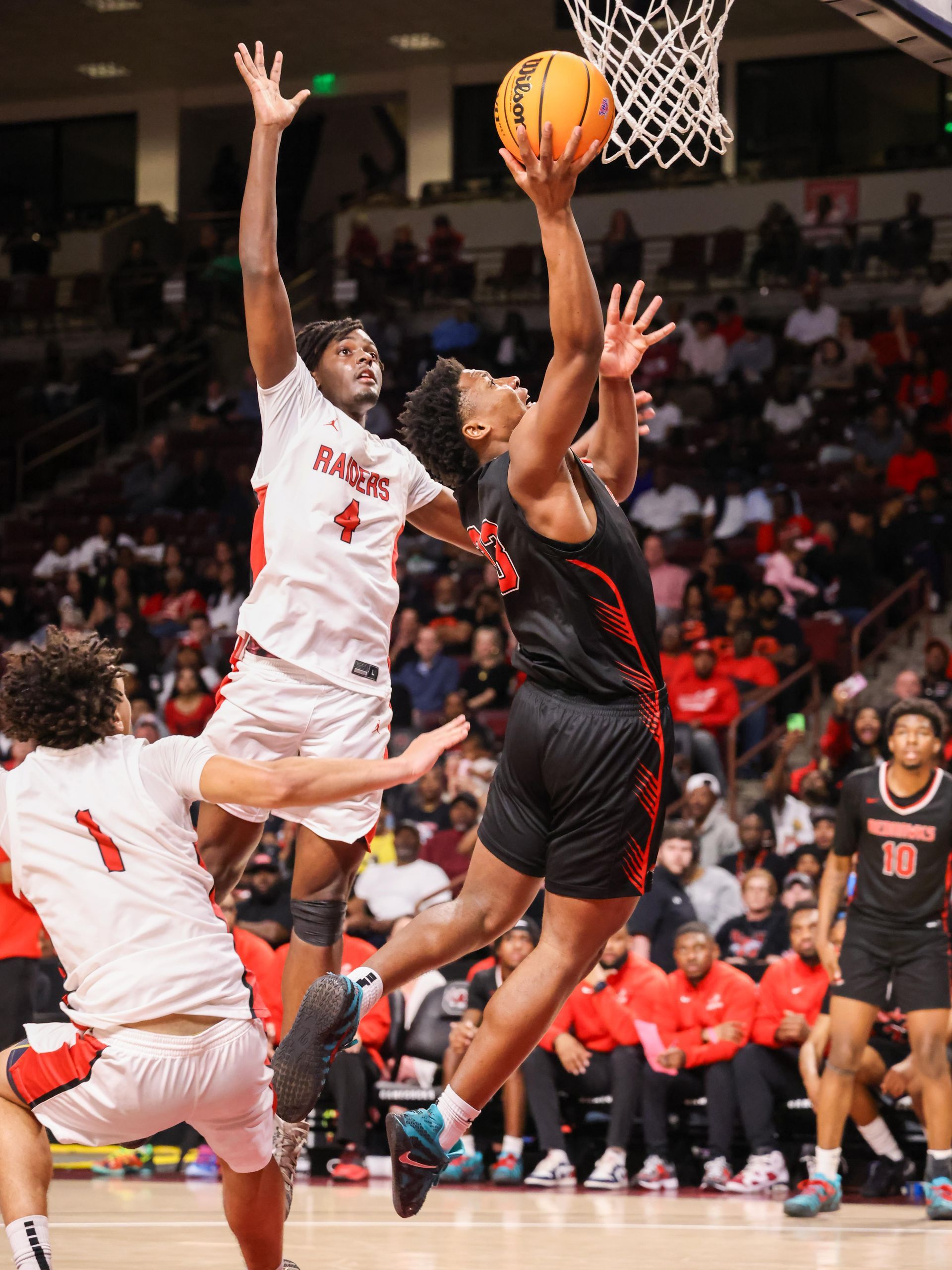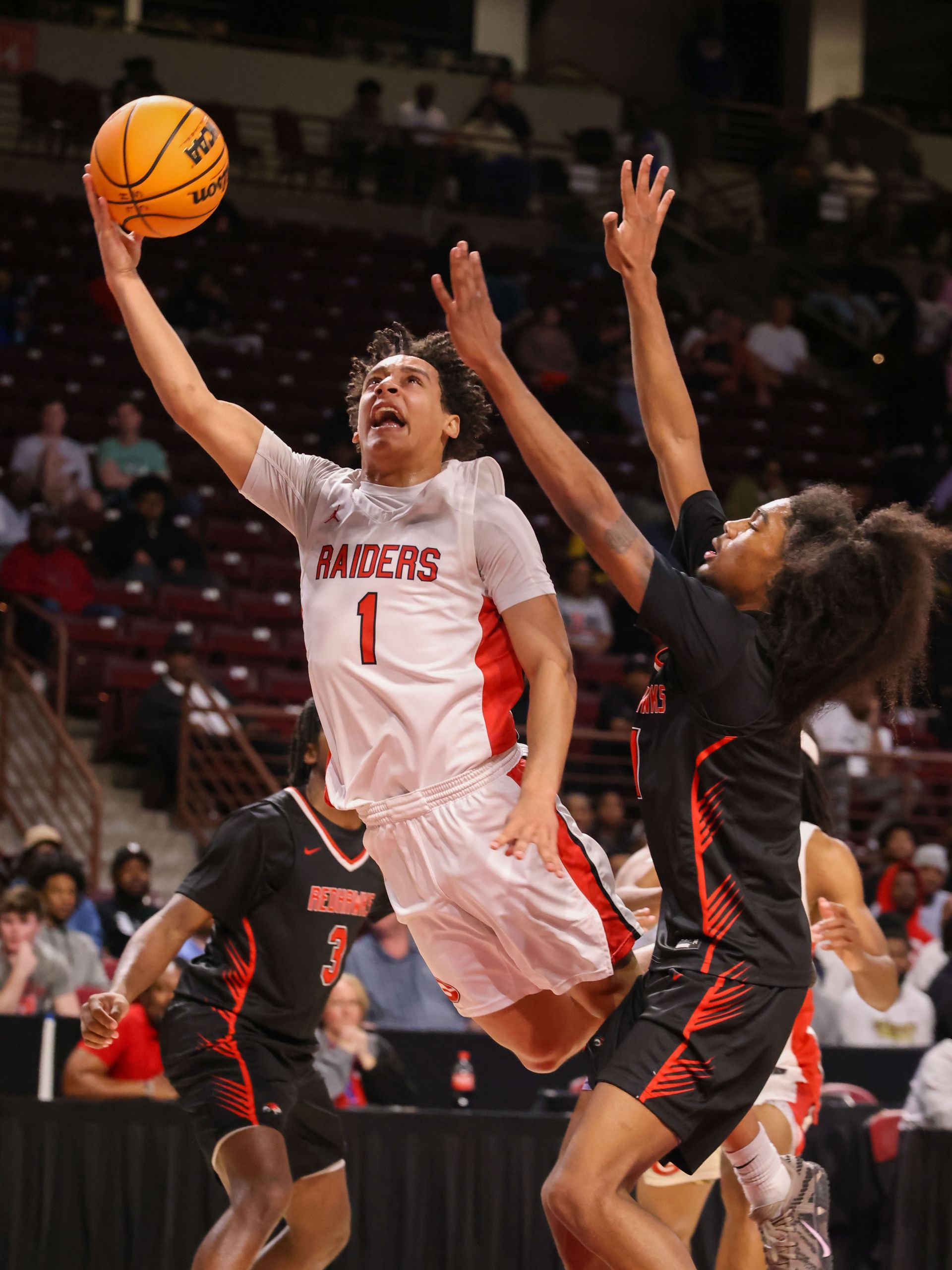 Westwood got off to a slow start that could only be likened to a cold starting old diesel engine. Down by more than 10 in the opening minutes, it seemed like Greenville was going to run away with the game. But, the Red Raiders didn't give up and at the half were only trailing 33-28. Returning to the court in the second, they owned the game and outscored the Red Devils in both quarters to win the AAAAA Div 2 Boys State Title 67-55.